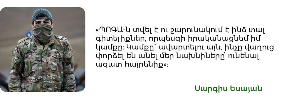 Մեր հայրենակիցներին ֆիզիկապես ամուր, խելացի և պատրաստված դարձնելու նպատակով «ՊՈԳԱ» միավորումը կազմակերպում է անվճար ռազմամարզական դասընթացներ՝ բաց 15 տարեկանից բարձր բոլոր հայորդիների համար։